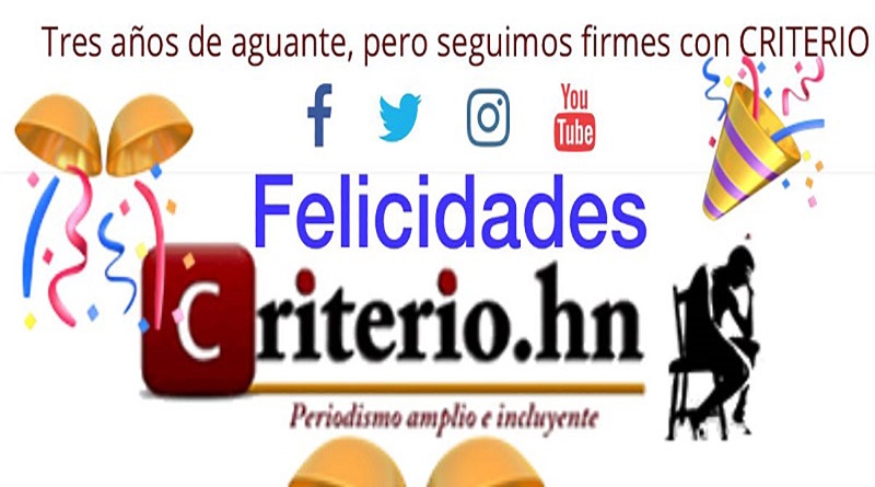 Pero en el ámbito de las comunicaciones si tenemos que celebrar: Son los tres años que cumple Criterio.hn, no solo como portal digital de 24 horas de servicio, sino de un quehacer informativo valiente y veraz con esfuerzo Anticorrupción en el que asume los riesgos de la prensa que busca y publica los actos públicos y privados que dañan el poco bienestar de nuestra población.