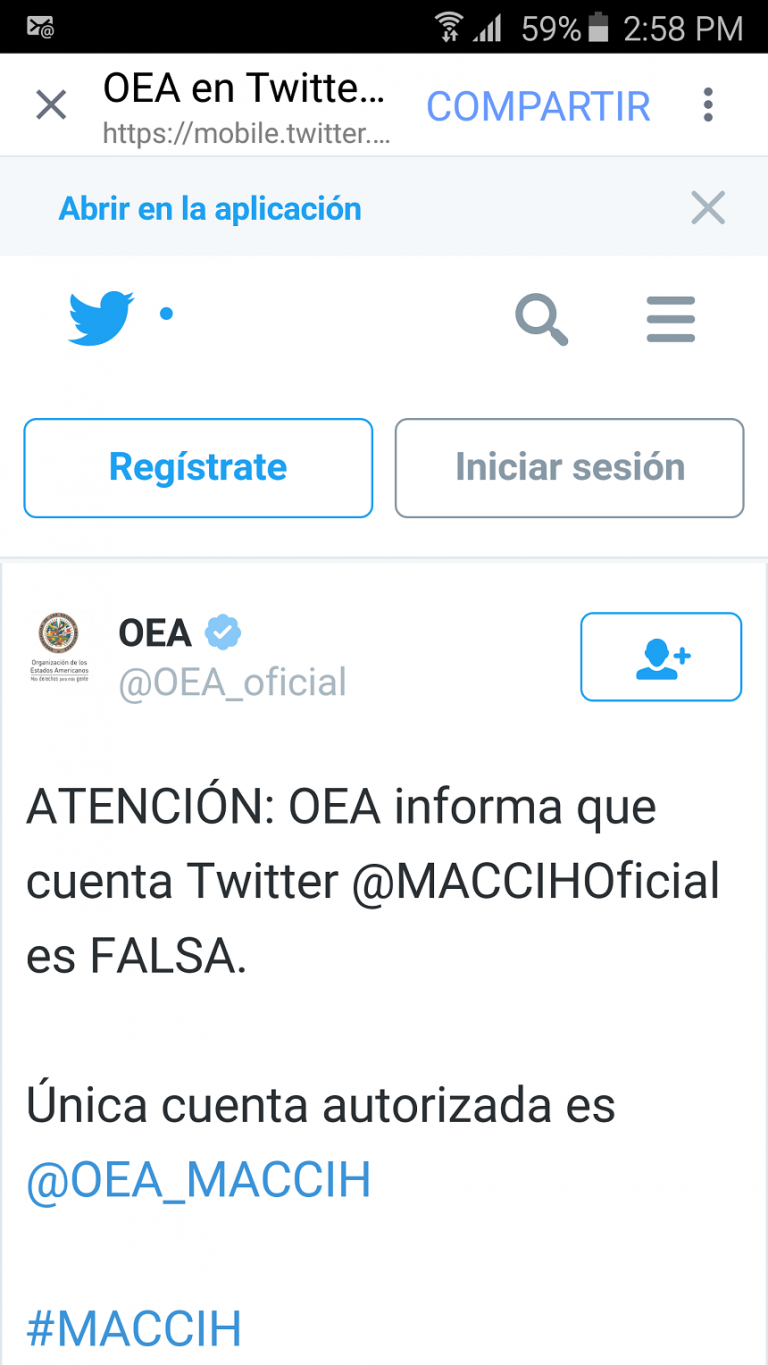 Crean página paralela de la MACCIH en Twitter