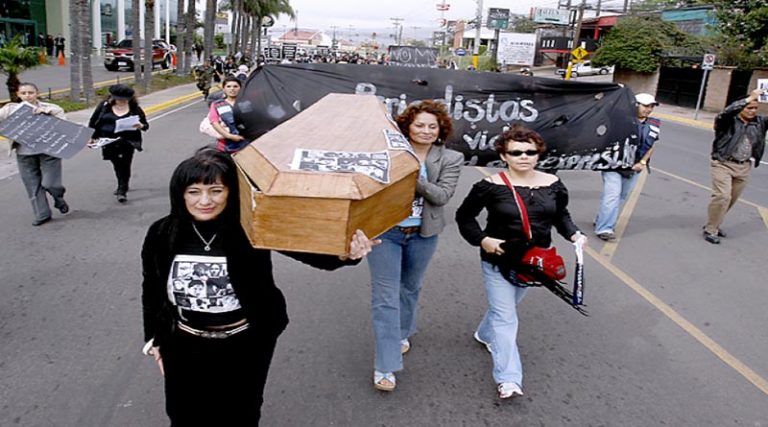 Por: Thelma Mejía redaccion@criterio.hn Tegucigalpa.-Periodistas de Tegucigalpa protagonizaron en abril de este año una protesta con ataúdes frente a la sede del Ministerio Público (fiscalía), en recuerdo de cada uno de