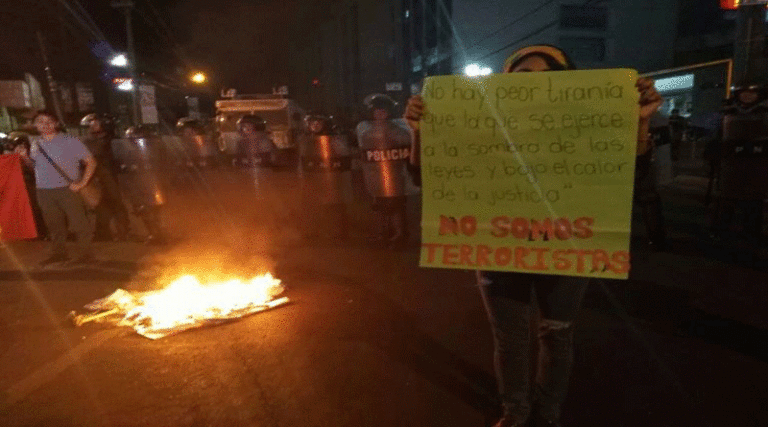 Ciudadanos queman publicidad del Partido Nacional durante protesta contra “ley antiterrorista”