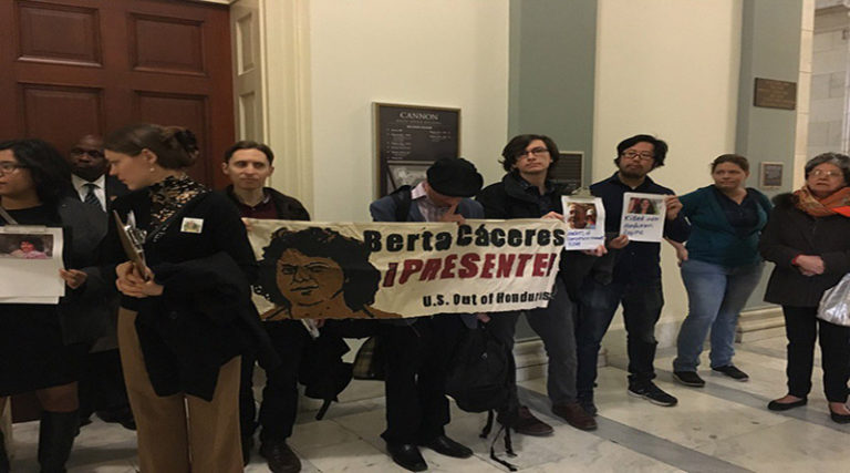 Manifestantes enfrentan en Washington al presidente hondureño por asesinato de Berta Cáceres