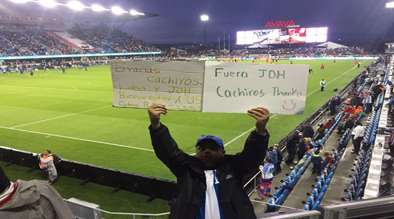 Hondureño saca pancarta en estadio “gringo” dándole gracias a “Los Cachiros”