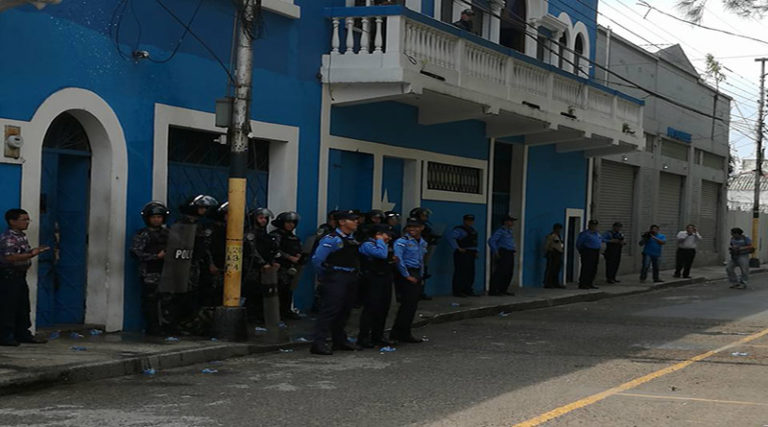 El incidente se produjo cuando la protesta del 1 de Mayo pasó por el frente de la sede del Partido Nacional Por: Redacción CRITERIO redaccion@criterio.hn Tegucigalpa.-Por gritar “fuera JOH”, frente