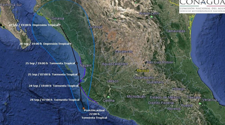 Según el pronóstico de la institución, Pilar no llegará a convertirse en huracán, si bien traerá lluvias en varios estados mientras avanza en paralelo a las costas de México. La