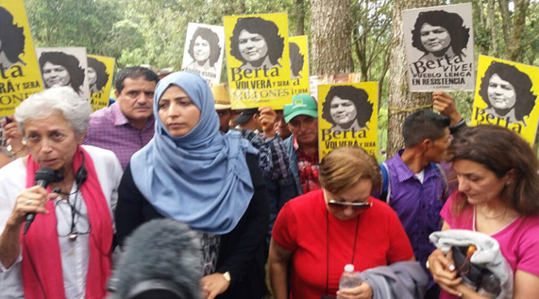 Por: Redacción CRITERIO redaccion@criterio.hn Tegucigalpa.-En una visita a Río Blanco, Intibucá, dos mujeres Nobel de la Paz exigen justicia por el asesinato de la ambientalista hondureña Berta Cáceres, asesinada