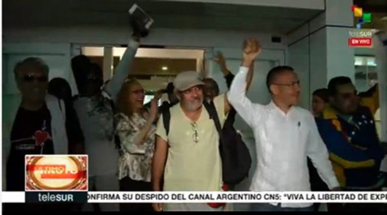 Los artistas fueron recibidos con júbilo y muestras de seguridad en Caracas Tomado (TeleSur) Tras 18 horas de detención, los músicos venezolanos fueron liberados y luego deportados de Honduras. El