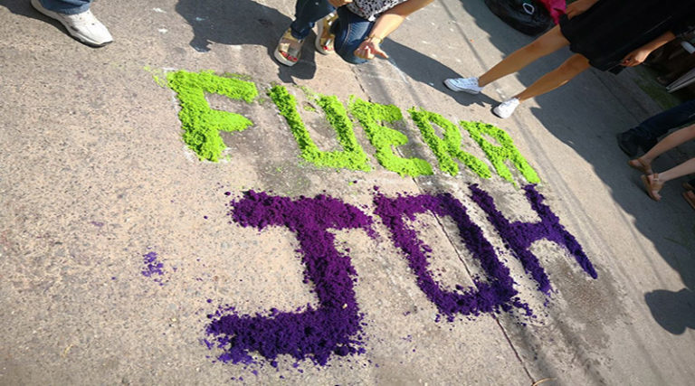 Despedirán hondureño por hacer alfombra de “Fuera JOH” en Comayagua