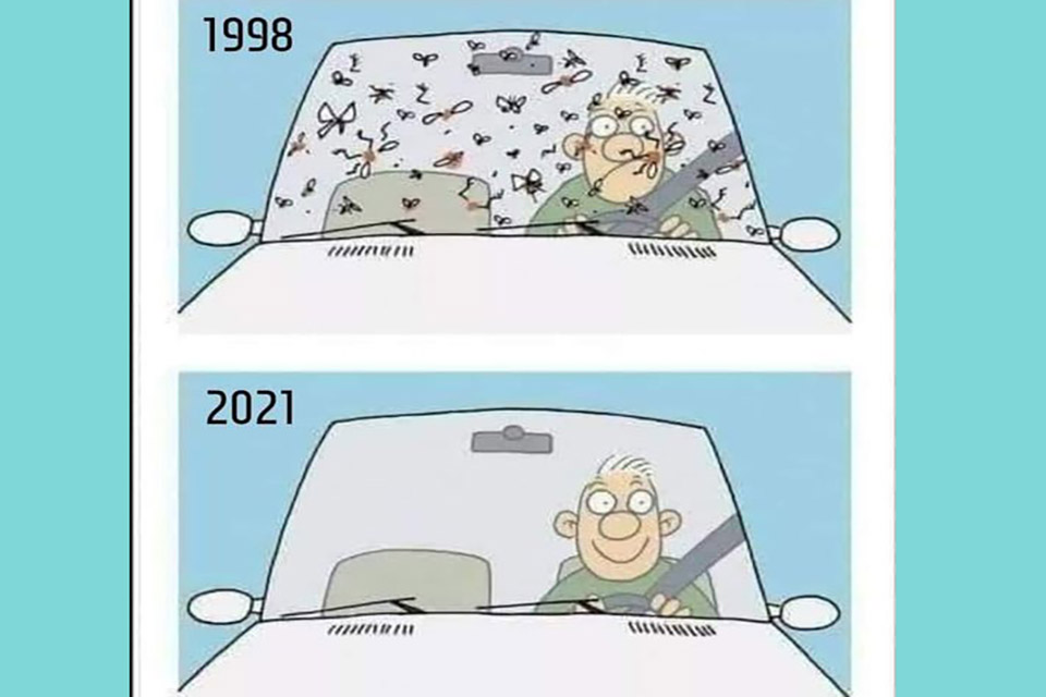 Puede parecer genial viajar con un parabrisas limpio. ¿Pero eso no te dice nada? ¿A dónde se fueron los insectos?