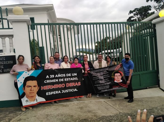 Tegucigalpa.- A menos de cuatro meses de que se cumpla el 40 aniversario de la ejecución extrajudicial de Herminio Deras García, la Corte Interamericana de Derechos Humanos (Corte-IDH) condenó internacionalmente al Estado de Honduras por este hecho, así como las persecuciones, detenciones arbitrarias, torturas, exilio forzado, entre otros actos violatorios perpetrados contra sus familiares a lo largo de 30 años.