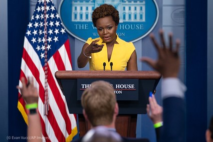 Karine Jean-Pierre, vicesecretaria de prensa principal de la Casa Blanca, es la primera mujer abiertamente gay y la segunda mujer negra de la historia en ofrecer la rueda de prensa de la Casa Blanca.