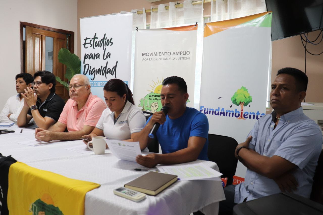 En la conferencia de prensa estuvieron presentes: Julio Paz, integrante de la Fetrixy y representante del pueblo tolupán; Francisco Godínez de la Central Nacional de Trabajadores del Campo de la región norte de Honduras; Estefany Contreras, área legal del MADJ; Juan Mejía, área de investigaciones del MADJ; Víctor Fernández, coordinador del Bufete Estudios para la Dignidad; y Martín Fernández, coordinador del Movimiento Amplio por la Dignidad y la Justicia.