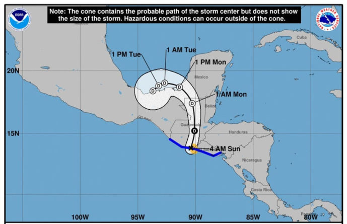 Según los expertos se pronostica que este Ciclón Tropical se desplazará lentamente hacia el nornoreste, o norte dentro de territorio guatemalteco durante el día de hoy domingo, con una rapidez media de 5 a 10 kilómetros por hora .