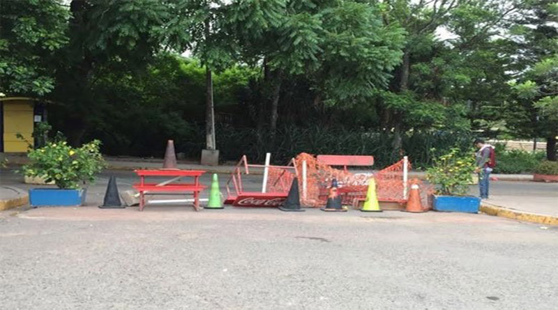 También están bloqueadas varias calles dentro de la universidad y algunos estacionamientos están bloqueados con varios objetos que impiden el paso.