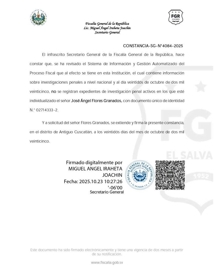 La alerta de INTERPOL fue retirada en diciembre de 2025, y el Gobierno de España admitió la solicitud de asilo en favor de ambos hasta el pasado 3 de marzo de 2026; sin embargo, el proceso penal en El Salvador continúa.