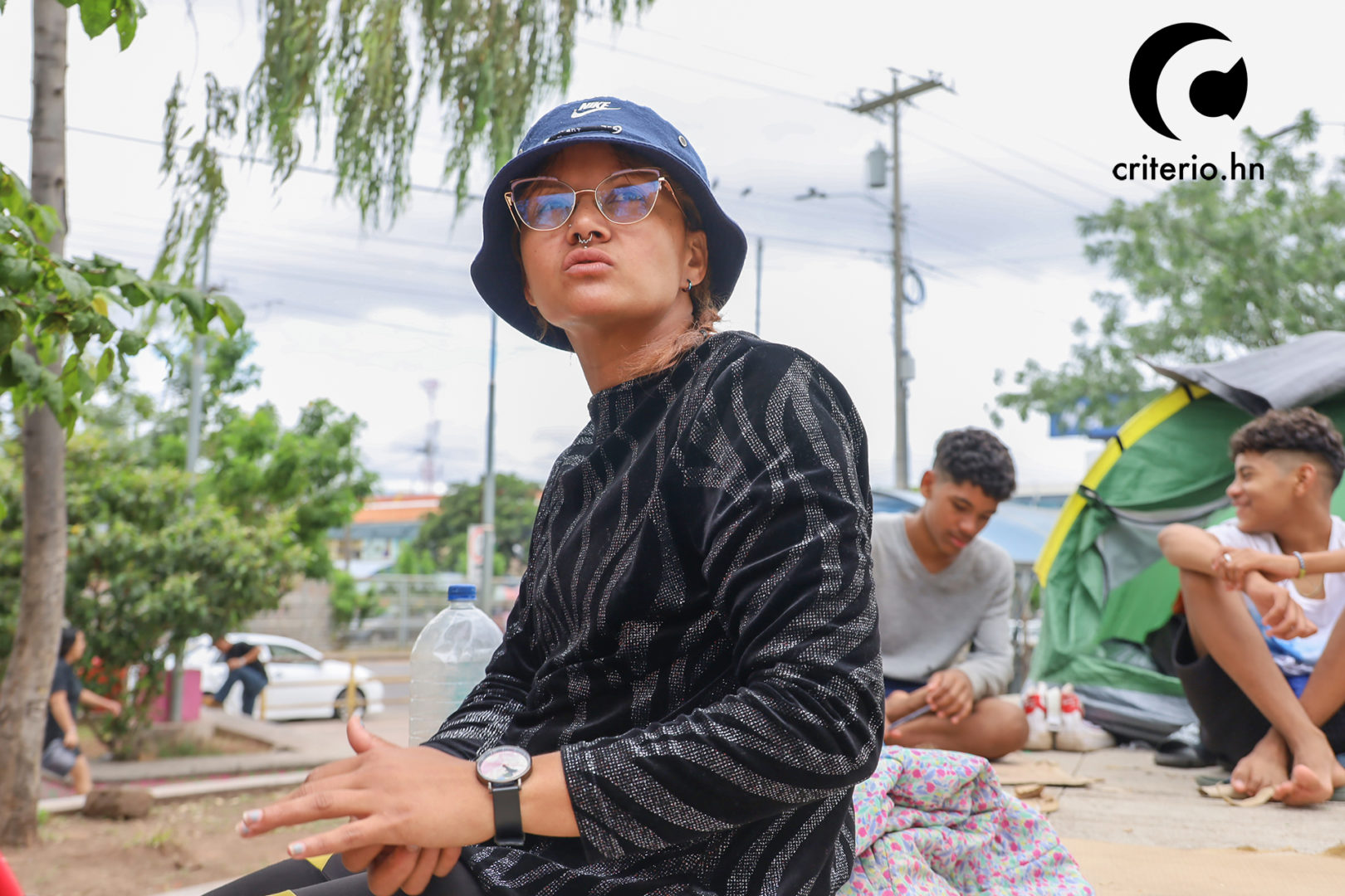 “Estamos desde el sábado, llegamos aquí en la noche, y sabíamos de ese lugar para dormir, pero cuando llegamos aquí dos guardias nos dijeron que no podíamos ingresar”, contó Heidi González a Criterio.hn.