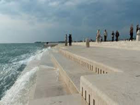 Sus 35 tubos generan de forma precisa una nota distinta provocada con el movimiento de las olas y la energía del viento. Cada tubo atraviesa la estructura y hace contacto con el mar Adriático, mientras que en la parte de arriba veremos pequeños orificios, que en conjunto crean una melodía sorprendente e ideal para perder la vista en el horizonte, o simplemente un placer para nuestros sentidos.