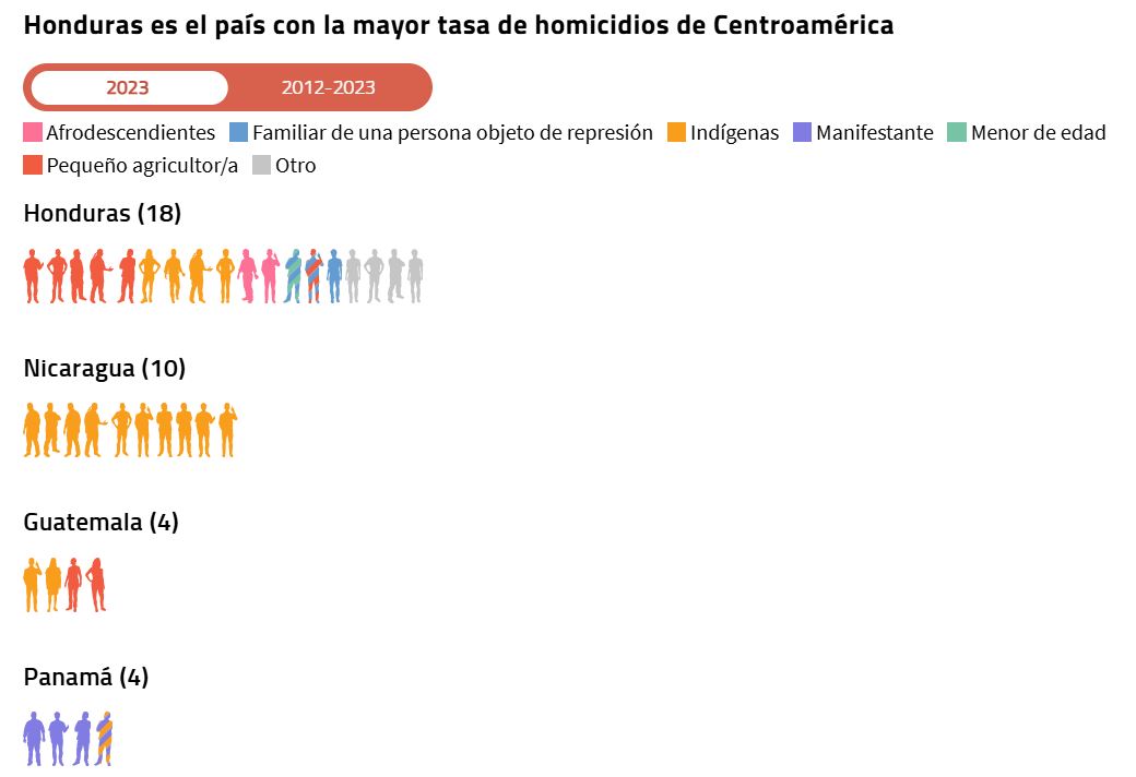 Furones aclaró, que, si bien Honduras ya había liderado el listado en 2022, no siempre el país centroamericano ha encabezado el ranking. Sin embargo, sí ha estado entre los principales países que reportan el mayor número de asesinatos de personas defensoras per cápita.