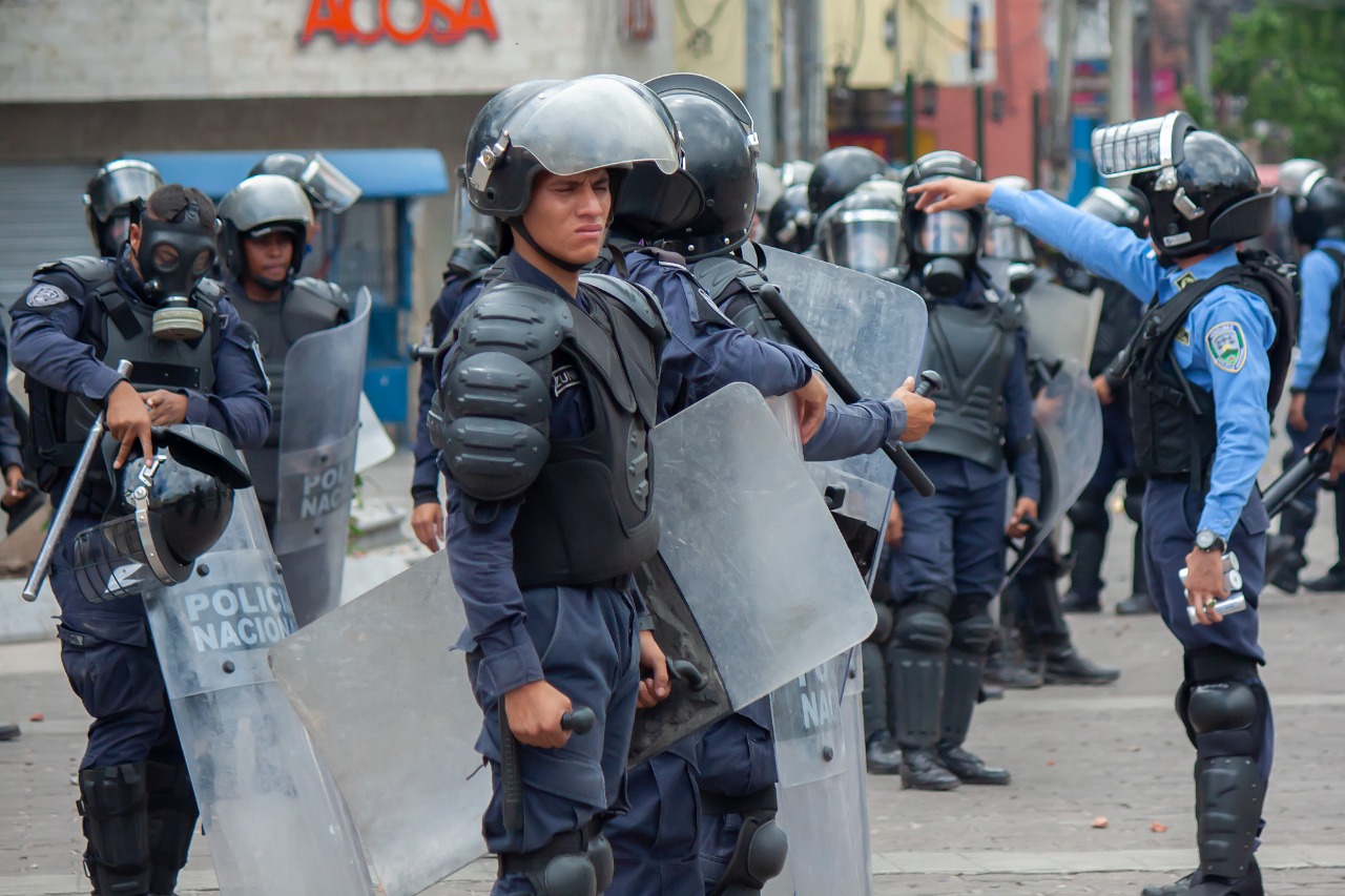 Los policías parecen «robocops» con su indumentaria para reprimir y golpear a los manifestantes