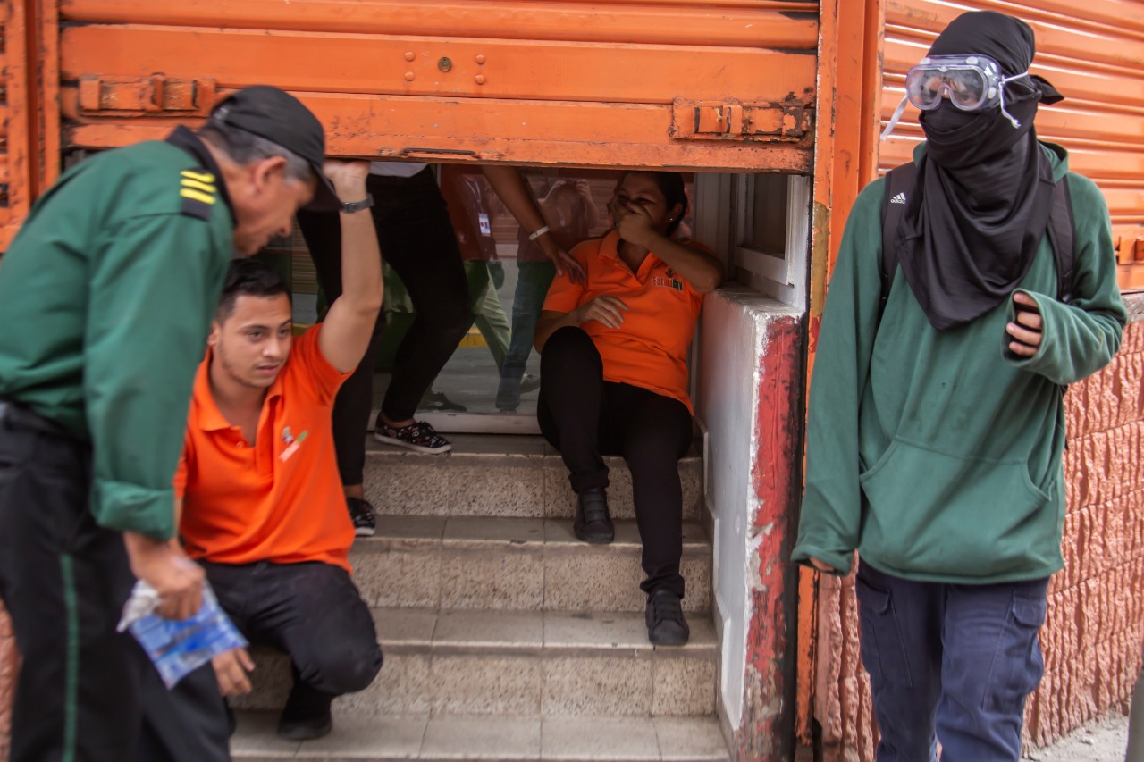 Los empleados de los comercios del centro de la ciudad cierran las tiendas para no ser victimas de los gases lacrimógenos