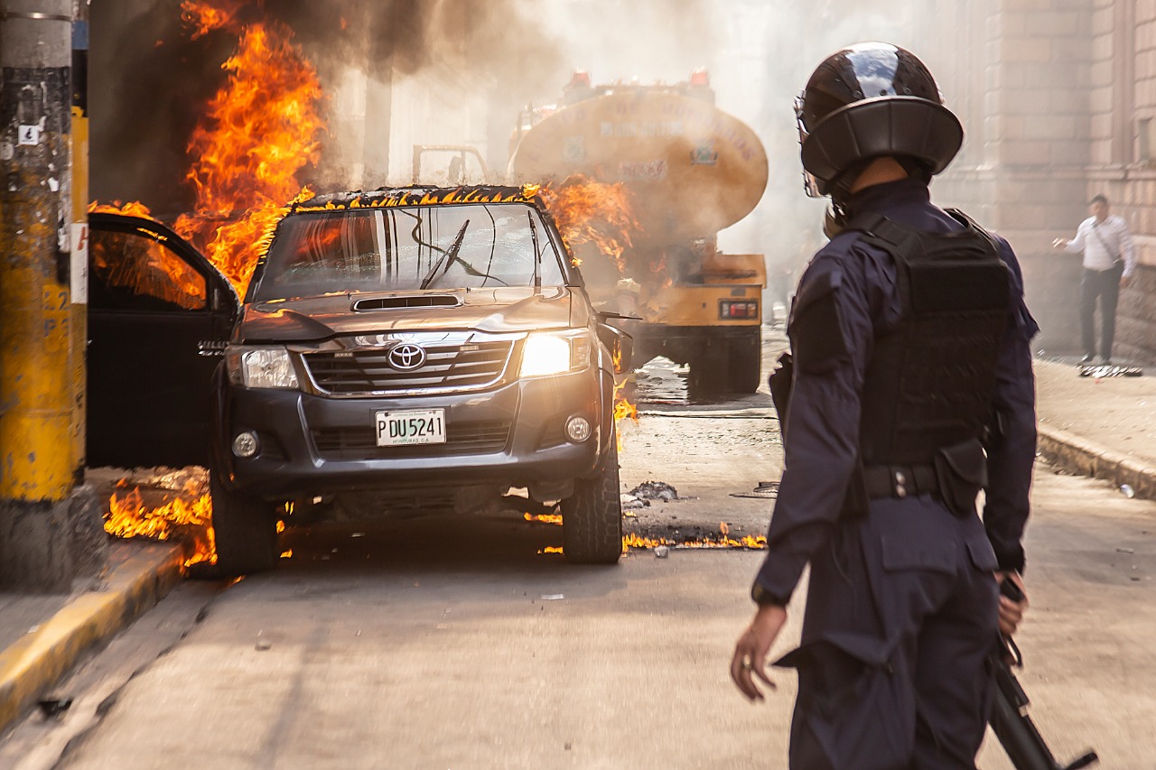 La policia ve como este vehiculo toma fuego. Al final la placa es fantasma, aunque el automotor tiene dueño