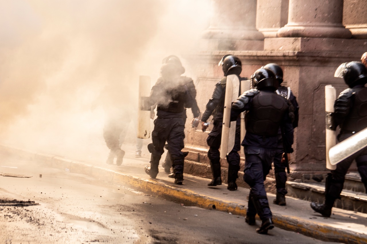 Los policías son victimas de sus mismo gases porque el viento sopla a su favor