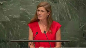 La embajadora estadounidense ante Naciones Unidas, Samantha Power, hizo el anuncio de la decisión de su gobierno ante el pleno de la ONU.