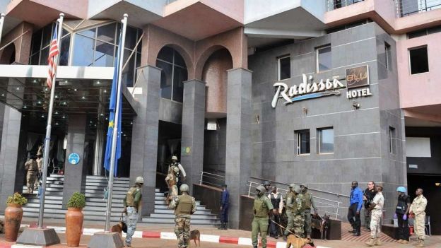 El terrorrismo de Al Qaeda ha dejado este viernes al menos 27 víctimas mortales en un hotel de lujo de Bamako, la capital de Mali. Una célula de al menos dos terroristas irrumpió a primera hora de la mañana en el Radisson Blu y tomó 170 rehenes entre huéspedes de varias nacionalidades y personal. El asalto ha terminado por la tarde con la intervención de las fuerzas especiales malienses en colaboración con Francia y EEUU.