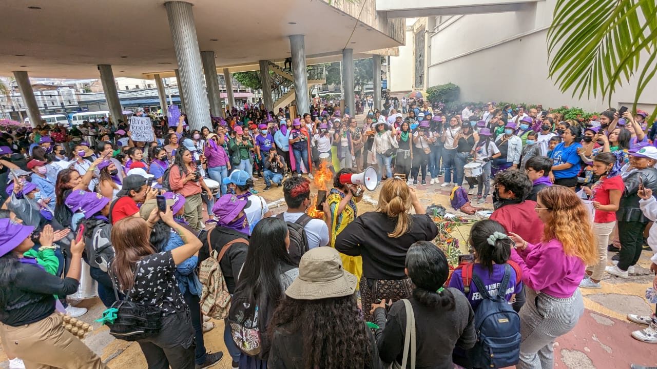 Mujeres exigen aprobación de leyes en los bajos del Congreso Nacional