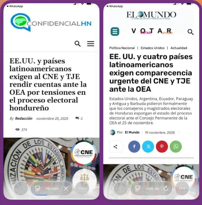 “Pedir públicamente la presencia de autoridades electorales —aunque sea mediante una carta diplomática— es una forma de presión política que roza esos límites, pero no genera ninguna obligación jurídica para Honduras”, escribió Rivera Joya.