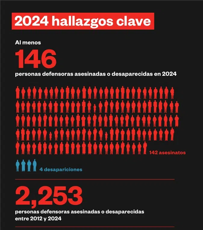 Tegucigalpa, Honduras. – El 2024 se convirtió en uno de los años más violentos para quienes defienden el ambiente y el territorio, según el informe anual de Global Witness. En todo el mundo se documentan 146 asesinatos y desapariciones prolongadas de personas defensoras, destacando el papel de la impunidad, los intereses empresariales y el crimen organizado en esta emergencia global.