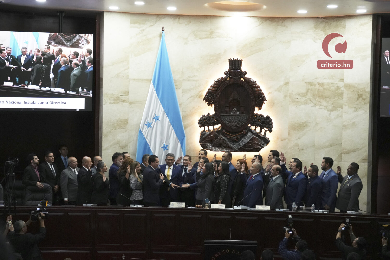 A las 4:01 de la tarde se procedió a la toma de promesa de ley de los 128 diputados propietarios y sus respectivos suplentes. Foto: Jorge Burgos/Criterio.hn