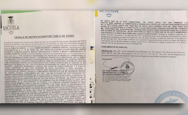 Chirinos fue abordado por los periodistas en virtud de que es el presidente de la Asociación de Médicos Especialistas del Bloque Médico Quirúrgico del HEU, pero desafortunadamente sus declaraciones molestaron a las autoridades del Hospital Escuela, quienes optaron por tomar la nefasta decisión que desde ya está siendo condenada por defensores de los derechos humanos, quienes ven dicha acción como una franca violación a la libertad de expresión.