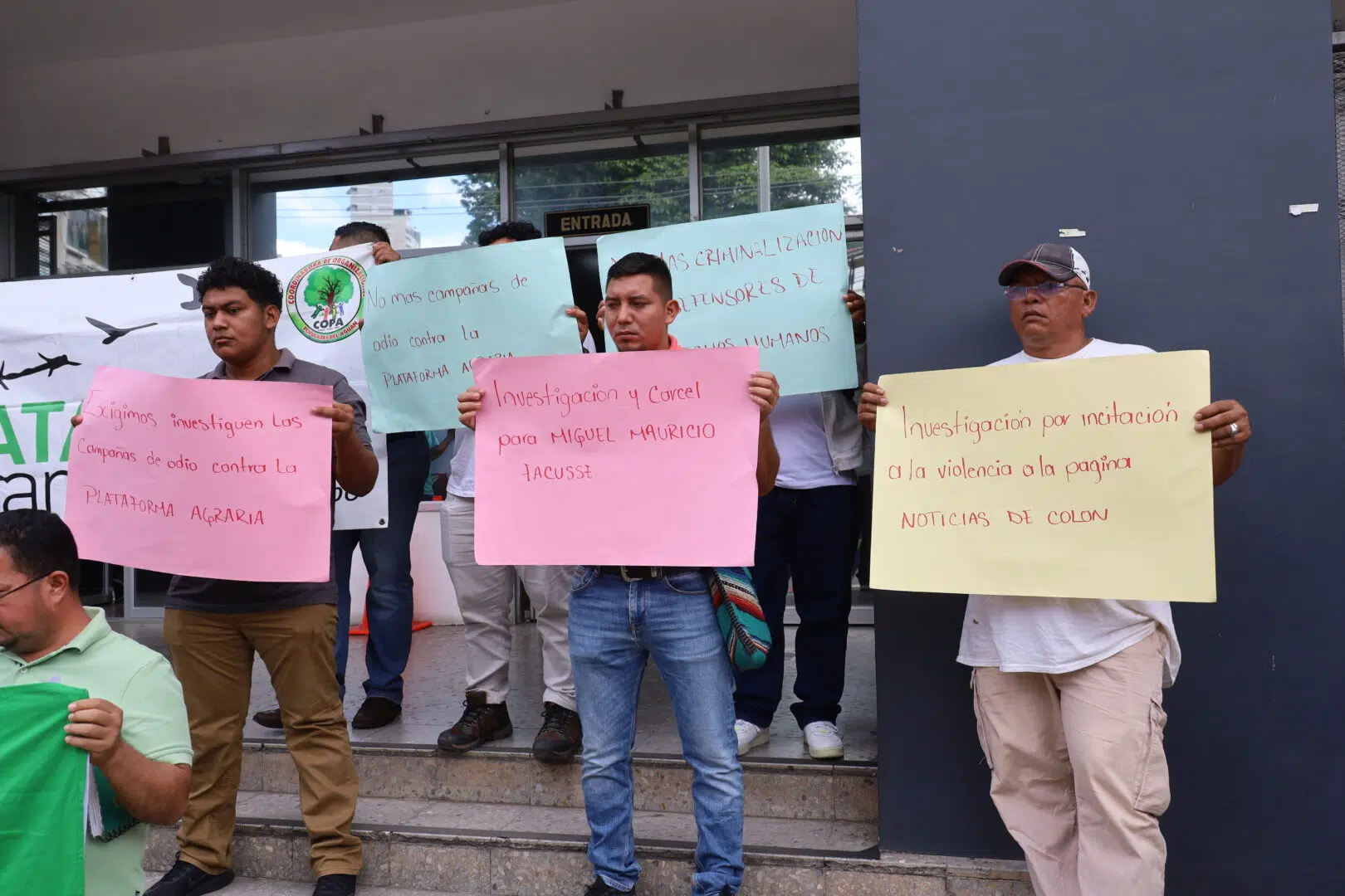 El abogado de la Plataforma Agraria, Pedro Mejía, informó a Criterio.hn, que a través de la denuncia están dando a conocer al Ministerio Público que existe una asociación para delinquir entre personas vinculadas a Corporación Dinant, entre las que particularmente mencionan a Miguel Mauricio de la Soledad Facusseé, la banda criminal “Los Cachos”, periodistas y comunicadores que instrumentalizan la libertad para justificar una campaña de odio.