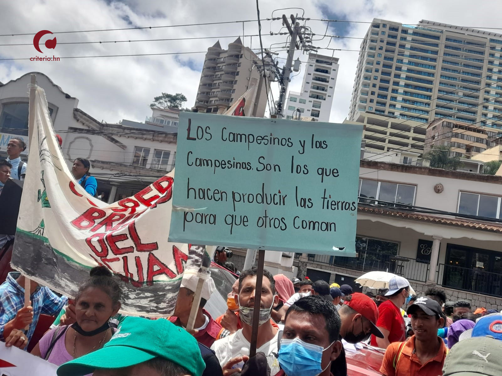 Alrededor de mil 500 campesinos se manifestaron con el propósito de entregar la propuesta que tiene un contenido jurídico y político para tomar una decisión para la resolución de la crisis agraria en el Valle del Aguán.