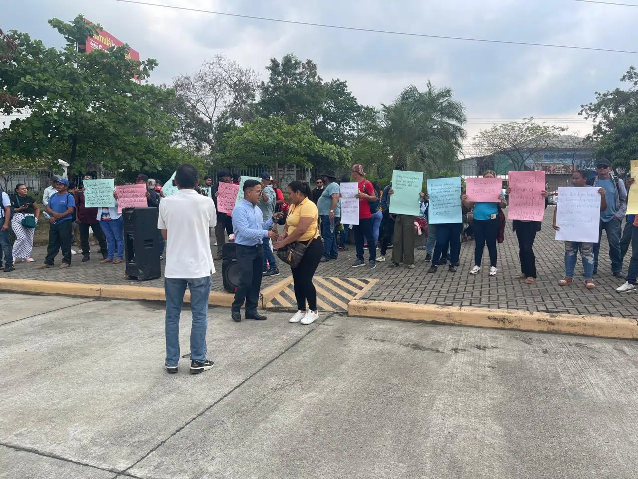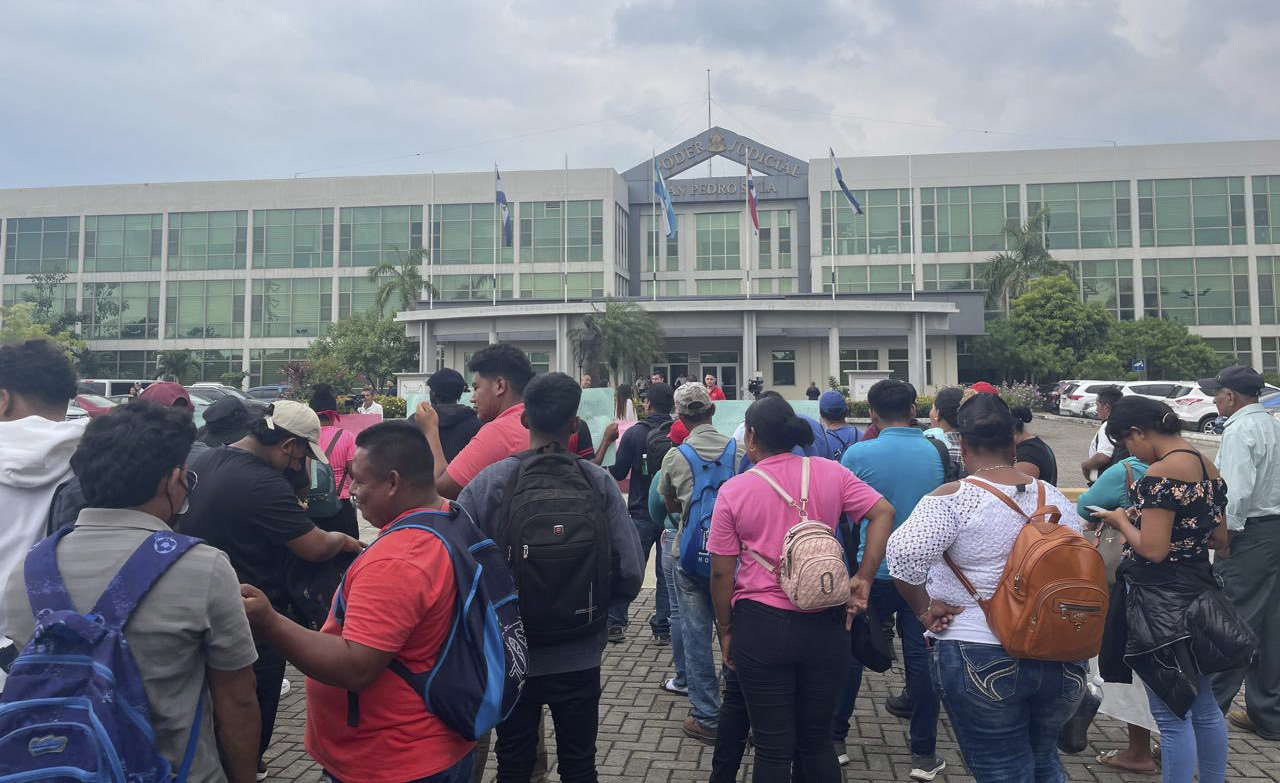 Este lunes, centenares de familias de las cooperativas agropecuarias campesinas aglutinadas en la Plataforma Agraria y la Coordinadora de Organizaciones Populares del Aguan (COPA), desarrollan de protesta frente a la Corte Suprema de Justiciade la ciudad de San Pedro Sula en el marco de la Audiencia que se celebra contra Juan Carlos Lizama Escalante líder del grupo criminal los “cachos” que mantiene desplazado por la fuerza a la cooperativa agropecuaria Camarones desde el 24 de diciembre de 2024.