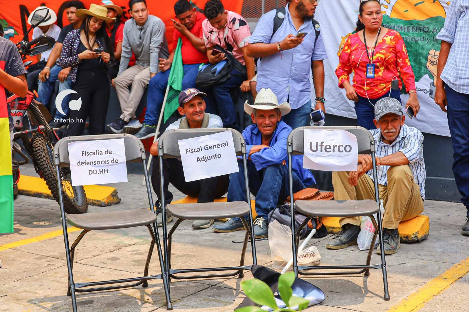 Desde el Bajo Aguán, Atlántida, Yoro, Santa Barbara, El Progreso, La Esperanza, Locomapa, Jilamito, Marcala, Pajuiles, entre otras poblaciones, estaban a tempranas horas para tener un dialogo directo con las autoridades del Ministerio Público, sin embargo, vacías permanecían las sillas designadas a la Fiscalía de defensores de derechos humanos, fiscal general, fiscal general Adjunto y la Fiscalías de Etnias.