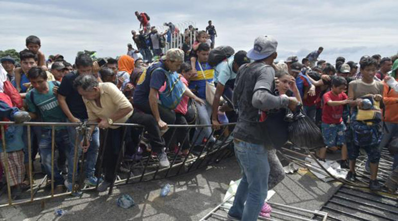 La tarde de este viernes, integrantes de la caravana de migrantes hondureños que buscan llegar a Estados Unidos, lograron abrir las puertas de la frontera México-Guatemala, ingresando a territorio mexicano donde a pocos metros ya los esperaba un contingente de 400 policías federales en un primer retén.