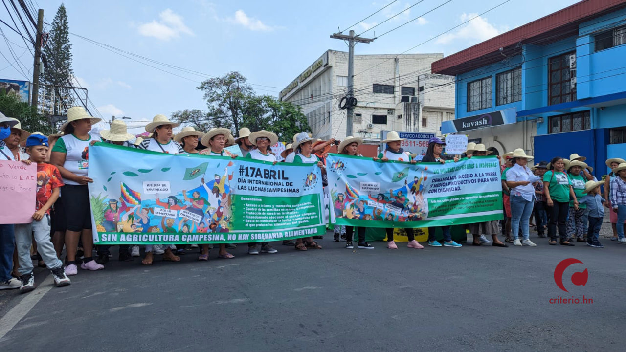Foto Portada: Las y los campesinos caminan hacia casa presidencial para presentar su carta de reclamos. Foto: Jorge Burgos/Criterio.hn Tegucigalpa.-