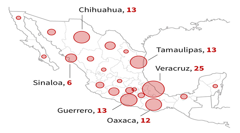 * El 23 de marzo Miroslava Breach fue asesinada a tiros dentro de su automóvil fuera de su casa, en Chihuahua. La periodista investigaba temas de crimen organizado y corrupción.