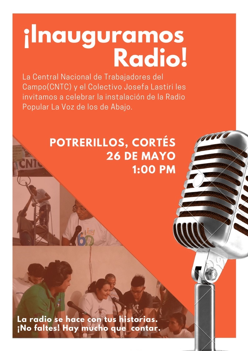 Tegucigalpa.- La Central Nacional de Trabajadores del Campo (CNTC), inaugura este sábado la radio comunitaria La Voz de los de Abajo.