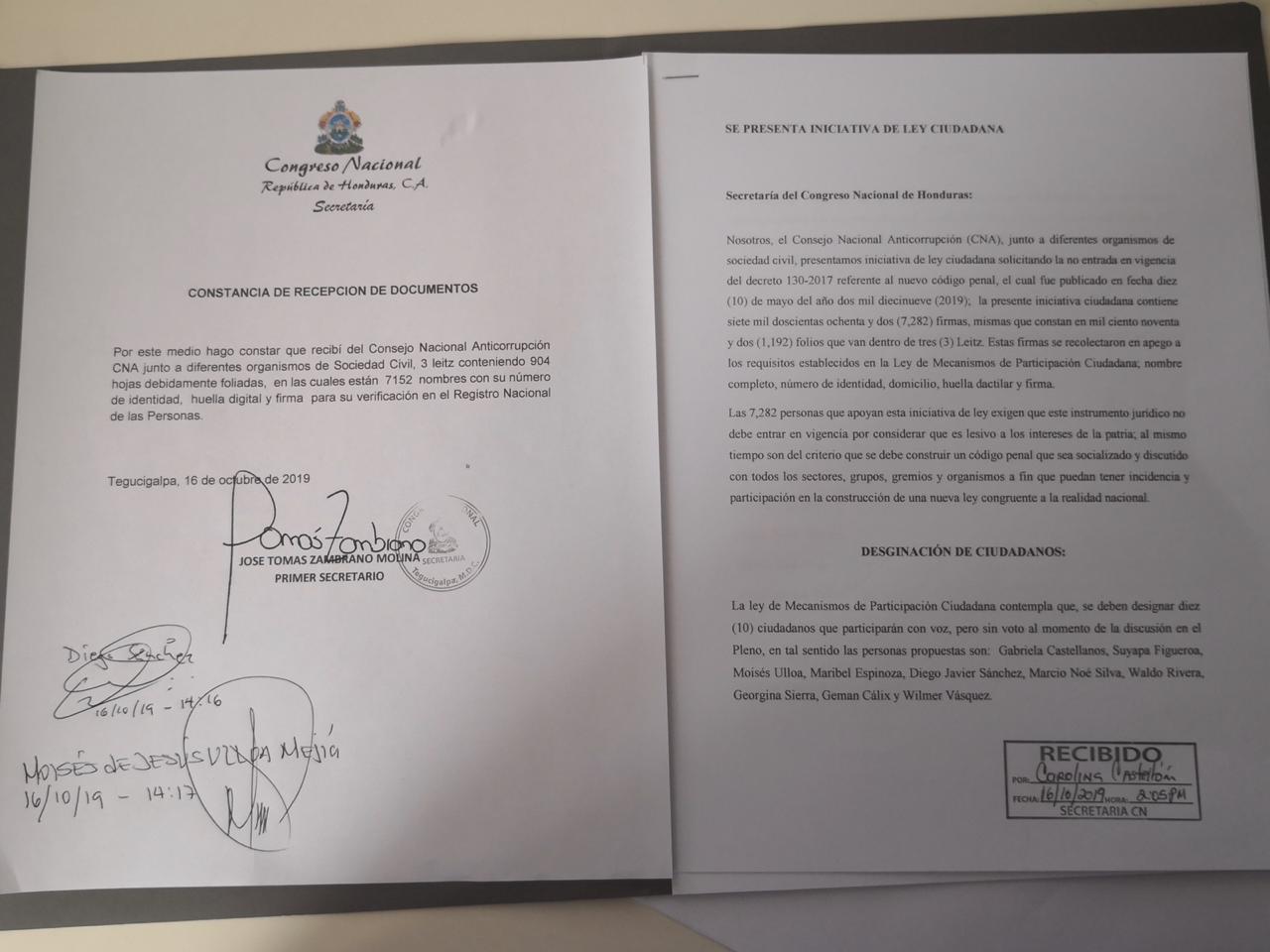 Por su parte la directora del CNA, Gabriela Castellanos manifestó que la movilización pacífica tenía como fin primordial entregar la iniciativa ciudadana acompañada de más de 7 mil firmas de los hondureños que no están de acuerdo con el nuevo Código Penal.