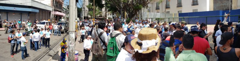 La movilización inició frente a la sede del CNA y recorrió las calles del barrio San Rafael y el Guanacaste para luego ingresar al centro de la ciudad y llegar hasta el parque La Merced donde fueron recibidos por un fuerte contingente de militares que resguardaban la sede del Poder Legislativo.