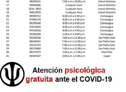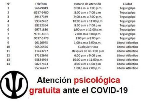 A continuación, Criterio.hn le comparte el listado teléfono de los expertos hondureños que le darán asistencia mental: