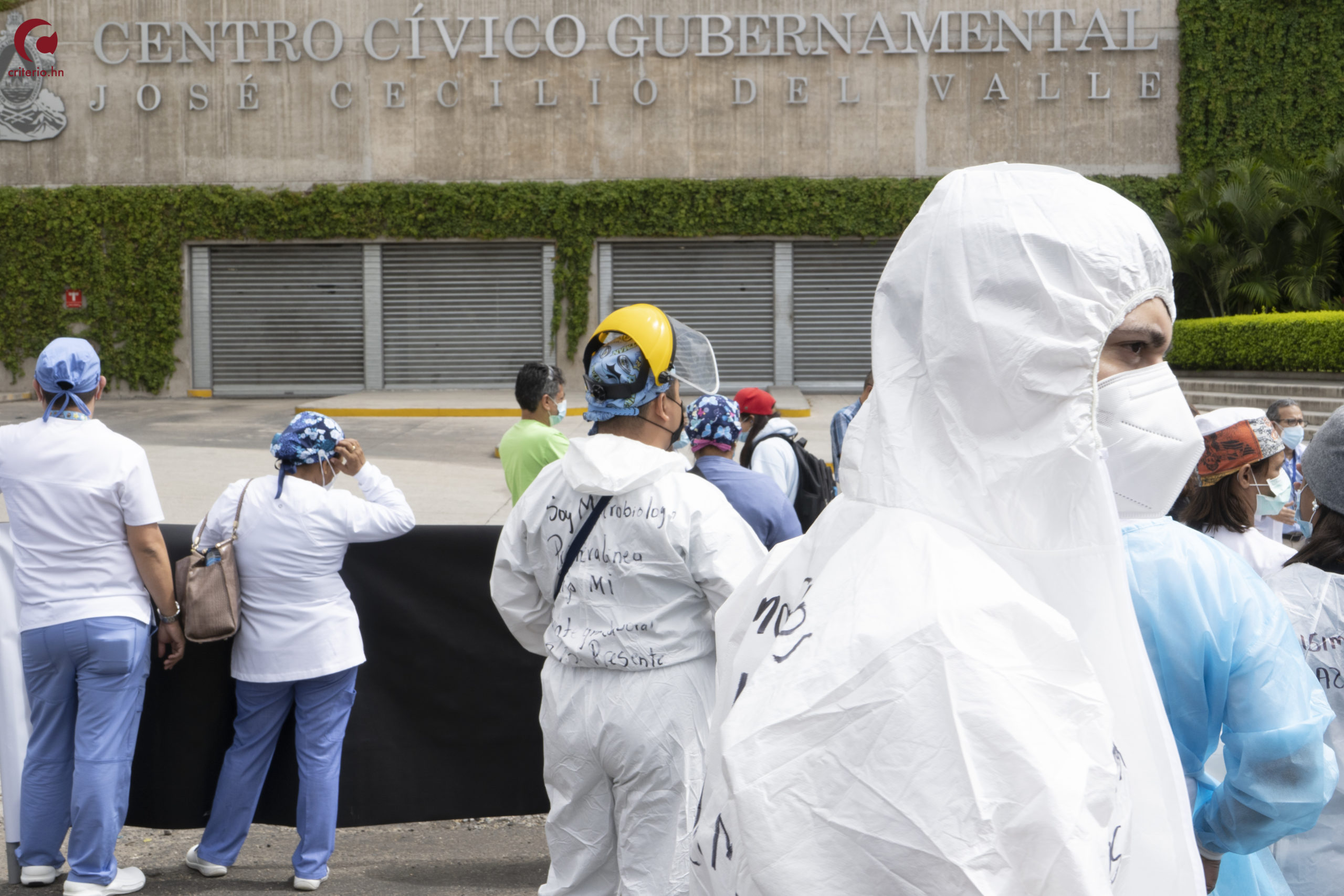 En esta ocasión la protesta, con médicos de primera línea, salió de las instalaciones del Centro Comercial Centroamérica hasta las afueras del Centro Cívico.