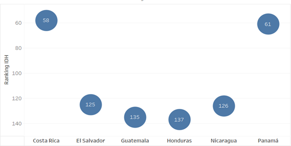 Recientemente, el Programa de Naciones Unidas para el Desarrollo, publicó el Índice de Desarrollo Humano, en su versión 2021-2022. Recordando que en este indicador los países del mundo se clasifican en 4 categorías de acuerdo al desarrollo humano que los mismos poseen: desarrollo humano muy alto (66 países), alto (49 países), medio (44 países) y bajo (32 países). En el caso de Centroamérica, la región tiene dos países con desarrollo humano muy alto (Costa Rica, puesto 58 y Panamá, puesto 61).