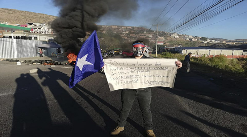 Nacionalistas se han sumado a las tomas pidiendo también que se vaya Juan Hernández del poder porque la base del Partido Nacional esta decepcionada dice esta pancarta.