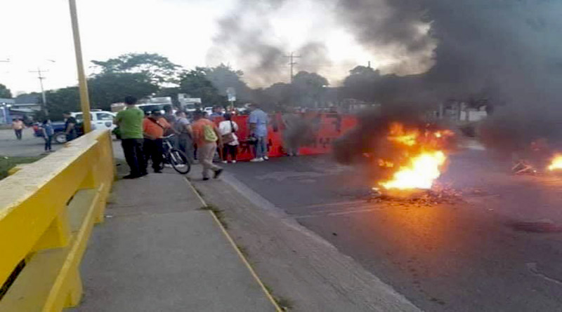 La carretera Panamericana que conduce a la zona Sur de Honduras esta tomada a la altura del municipio de San Lorenzo en el departamento de Valle