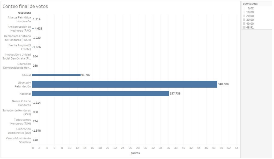 Como nota positiva resaltaron que no se reportaron casos en que electores votaron más de una vez en la misma Junta Receptora de Votos. De igual forma, compartieron resultados basados en el número de actas registradas por su plataforma de observación en las que el Partido Libertad y Refundación (Libre) superó con 348,009 votos al Partido Nacional, que obtuvo 257,738. Estos números corresponden a la observación de la Plataforma Juvenil Electoral en 10 de los 18 departamentos de Honduras.