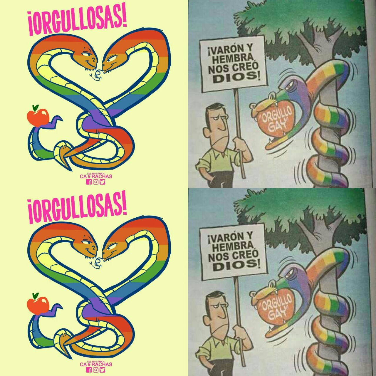 El congresista Banegas publicó una caricatura en uno de los diarios impresos de circulación nacional el pasado 24 de junio y en la misma se aprecia una serpiente con los colores de la comunidad LGTBI, sosteniendo una manzana en la boca con la frase “Orgullo Gay” y frente a ella un hombre con un rotulo que reza: “! Varón y hembra, nos creó DIOS!