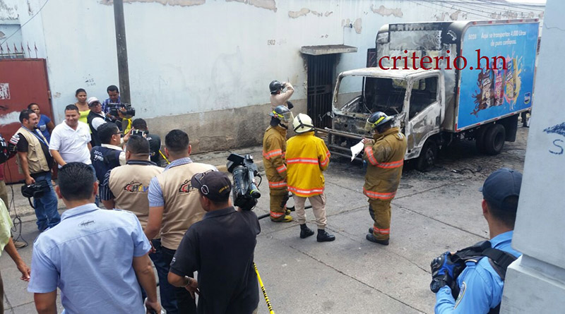 Tegucigalpa.-Un vehículo repartidor de productos lácteos de la empresa Lacthosa, fue incendiado la mañana de este viernes en la capital de Honduras.